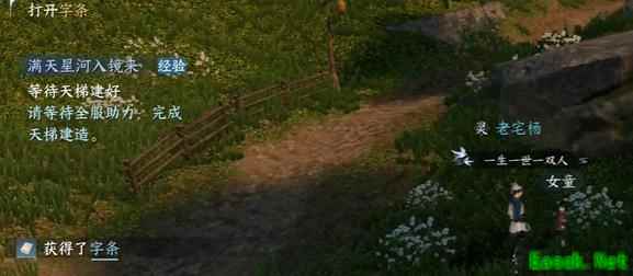 2、接下来触发奇遇任务,在女童身上有一张字条,玩家得获取该纸条。
