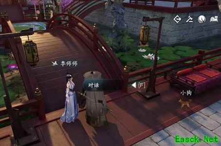 3、最后,玩家需要来到汴京坐标(1142.884)的位置把【包子】喂给【小狗】,之后进入任务场景后和【李师师】对话即可完成任务。