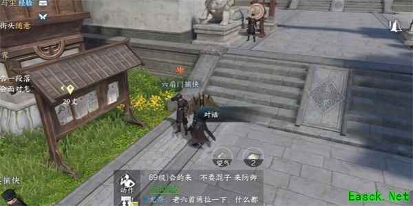 2、接着我们就在此位置,与门口的捕快进行对话,根据对话指引前往到衙门里面。