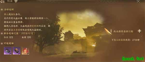 3:当然了,这个是必得金色心法的,每个星期至多可以刷取六次,超出六次就不能获得奖励了; 4:这个大盗的难度是不一样的,会随着服务器的开放逐渐提升等级的,前两天是1-3阶大盗,阶位越高奖励获得的越好。