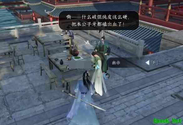 3、然后玩家根据任务引导,前往指定位置找到公子,将“止血散”给予。 4、接下来在跟着任务的指示,选择此引导地点的丰老板进行沟通,结束获得“糖葫芦”。 5、最后返回把糖葫芦交付给小叶即可完成该任务内容。