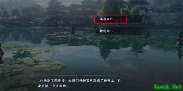 2、我们到达春熙楼之后,就可以看到新的菜单,我们在此菜单上进行选择【莲房鱼包】。