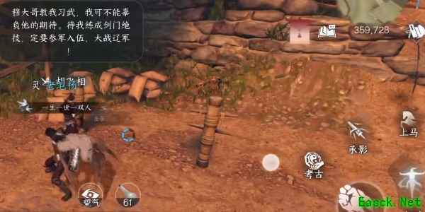 1、首先我们需要来到上述雁门关的位置,来到之后我们需要和何幕按进行对话;