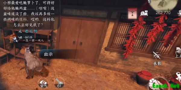 3、对话结束之后来到(267,770)和刘氏进行对话,同时我们需要出示佐料;