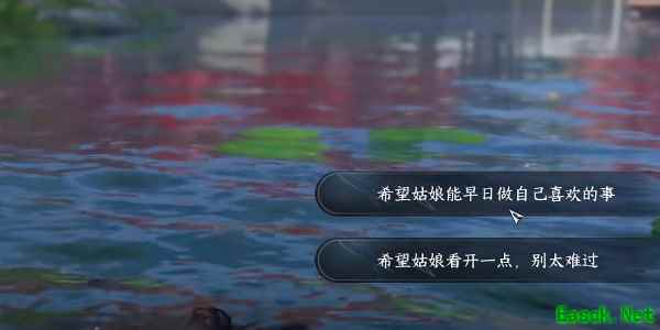 2、接着玩家需要跟随她来到湖边,之后再次对话,选框选择第一个选项;