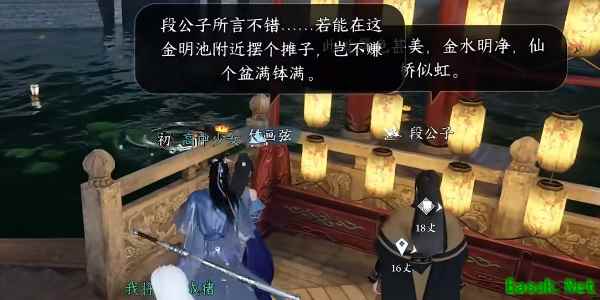 逆水寒手游凑个热闹任务怎么完成1、首先先来到汴京找到金明池和段公子对话;