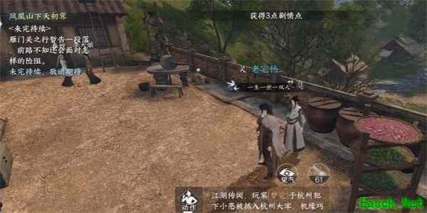 3、我们就前往到雁门关【381,890】的位置,与NPC进行对话,在对话中得知,NPC很贫穷,但是想继续读书只能凿壁偷光。