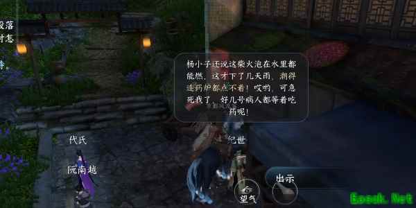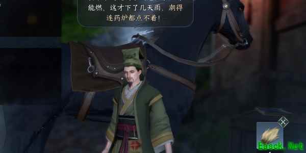 2、和他对话得知因为下雨纪大夫没有干燥的草木灰点燃药炉,将一份草木灰交给纪世,帮他点燃药炉。
