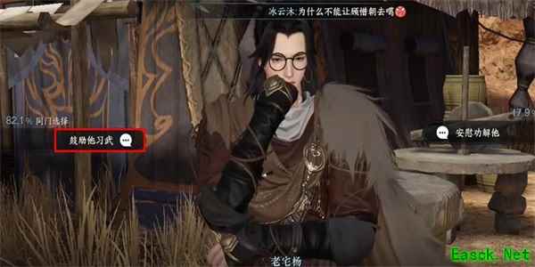3、我们把士兵击败之后,就继续与NPC进行对话,我们就按照标记好的对话回答即可,鼓励他去习武。