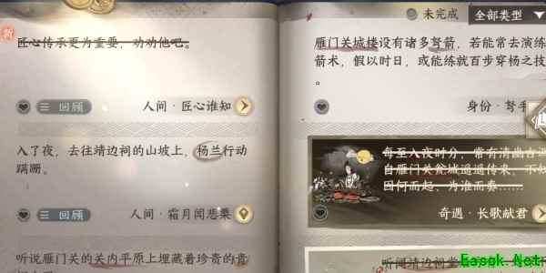 逆水寒手游匠心谁知任务攻略位置:雁门关(637,725)
