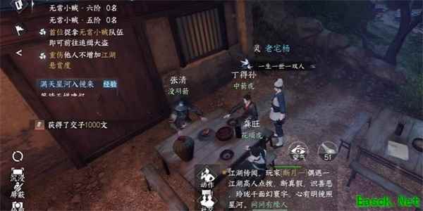 3、我们听完此对话之后,就可以完成该任务,还可以获取到奖励【交子*1000文】,最后还解谜成功。