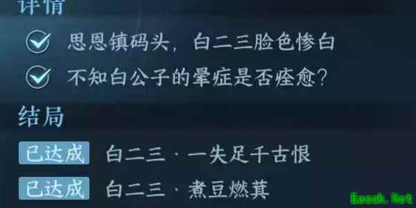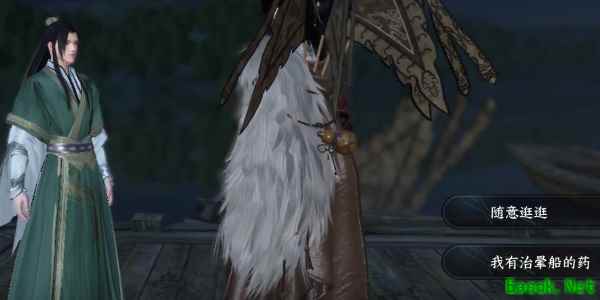 2、和他对话进入剧情,选择我有治晕船的药,将药给白二三,治好白二三的晕船;达成对应的结局煮豆燃萁。