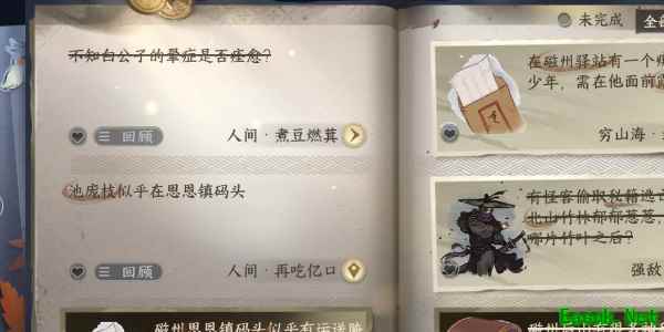 《逆水寒手游》煮豆燃萁任务攻略触发地点 磁州码头边(坐标1406,1115)。