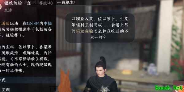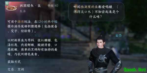 《逆水寒手游》再吃亿口任务攻略触发地点 磁州思恩镇一座庭院内(坐标1160,1023)。 任务步骤 1、到达指定区域后找到池庞枝,将西湖醋鱼出示给他吃。