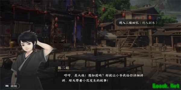 2、接着我们就需要进入到陈二娃的回忆当中,看成陈二娃是如何制服小鸟的。