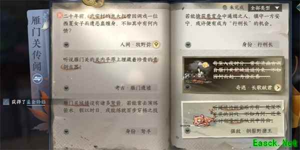 逆水寒手游牧野弥任务攻略1、首先我们需要前往到雁门关【308,753】的位置,与NPC进行对话,就可以解锁该传闻。
