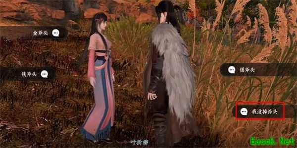 2、接着我们就被NPC询问到是否掉了斧头,就按照标记好的对话回答,NPC才能把任务交给我们。