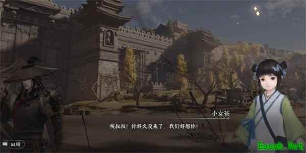 2、接着我们在对话中得知,铁手师兄是为了看孩子来到此处的,然后就开始跟小女孩进行对话即可。