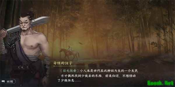 2、接着我们就会遇到奇怪的汉子,与此NPC进行对话,在对话中告诉我们找到到,我们丢失的东西。
