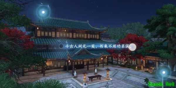 2、我们随游戏镜头看到太学管全景选择中间出现的光点作出第一句词(千古人间无一笑,书来不用功名误。)。