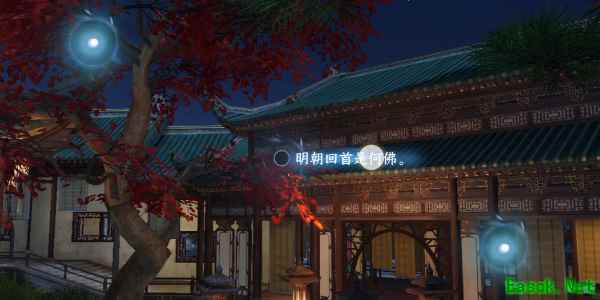 3、接着随镜头转到讲堂选择中间光点写出第二句词(明朝回首是何佛。)。