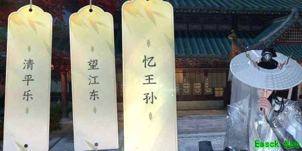 《逆水寒手游》汴京词话太学管通关攻略探寻过程: 1、来到汴京太学管内石碑上(坐标1187,1092)找到光点点击写词我们选择忆王孙作为词牌名。
