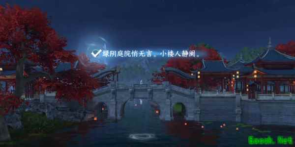 《逆水寒手游》汴京词话汴京河口任务攻略探寻过程: 1、我们来到汴京河口廊桥上(坐标1584,1342)点击写词,进入作词界面。