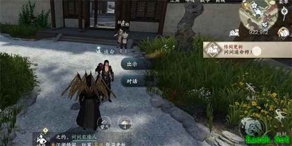 3、接着我们就前往到汴京【922,912】的位置,把草编小人出示给师兄看,并且与他进行对话即可。