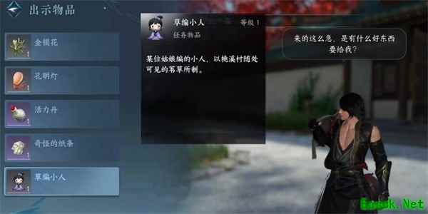 2、接着我们就继续对话,完成对话之后他们就离开,我们捡起地上的草编小人。