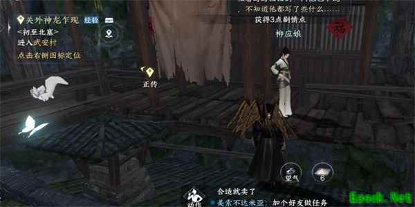 逆水寒手游檐上飞龙任务攻略1、首先我们需要前往到桃溪村【1003,1071】的位置,把NPC想吃的糖葫芦出示给他,就可以解锁传闻。
