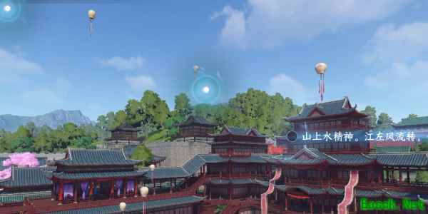 2、随游戏镜头移动会看见甜水巷繁荣的景象写出根据意象写出第一句词(山上水精神。江左风流转。但知我、浦南湖北。)。