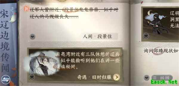 3;在对话结束之后,段景柱离开实施他的计划,我们打开传闻,我们的任务就结束了; 4:这个任务还是非常的简单的,我们只需要去找到这个npc进行对话即可。