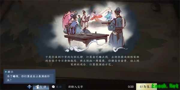 逆水寒手游勾栏卖艺游历任务攻略1、首先我们进入到此任务当中,画面上就会显示为了赚钱,打算在台上表演什么?
