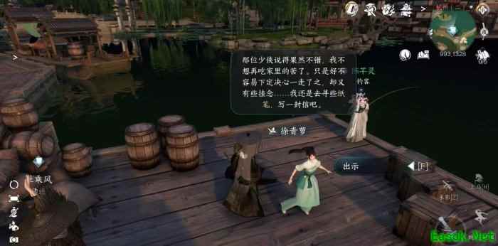 4、选择“我要会会你爹”或者“快逃”对应另外两个结局,选择“磁州”和“杭州”不影响后续 5、到杭州993.1328处向“徐青萝”提交“文房四宝”并对话,获得“写给父亲的信”
