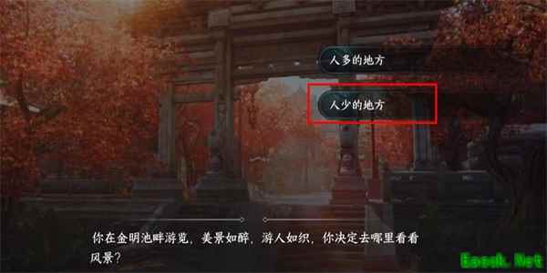 2、接着我们就来到了金明池当中,就会出现对话选择,按照小编标记好的对话进行选择即可。