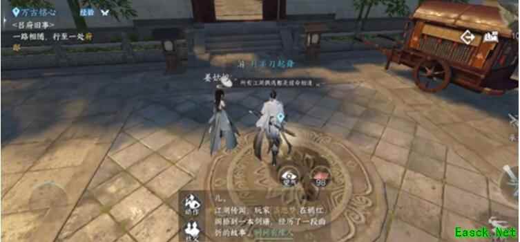2、然后在大门口与一位姑娘对话,然后再去吕府内找到吕锡山对话,知道门口的姑娘叫吕倩荣。