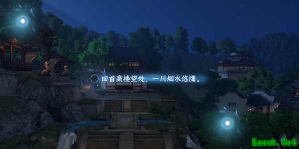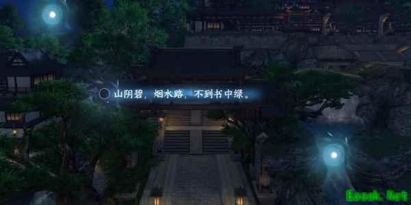 2、进入游戏中的作词画面,视野来到空中可以看见完整的书院就以书院为意象作词(山阴碧,烟水路,不到书中绿。)。