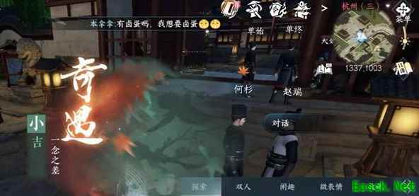 逆水寒手游一念之差奇遇怎么完成1.前往杭州的(1398,1031)处,拿到一张纸团,然后前往杭州(1337,1003)处对何衫使用动作“拱手”触发奇遇任务。 2.触发奇遇后和npc进行对话,根据剧情即可完成。