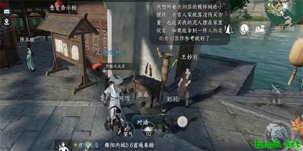 逆水寒手游兵刃之争任务怎么完成1、玩家需要前往到(951.999)这个位置找到npc阿银,然后听阿银等人对话。