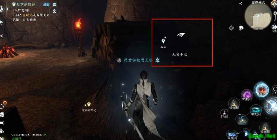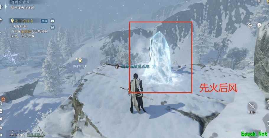 2、前往沧州坐标(1088,1105),并踩破冰板,前往下图所示的位置拿到无名笔记。