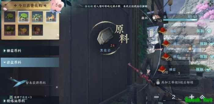 每天都会有NPC高价收购部分物品,并且价格倍数也会变化,这时就需要【大量好友】了,长期种植同一种作物,那么只需要隔段时间去找一找对应的高价作物,目前最高倍数为1.75,升级8级庄园可到2倍。 由于畜牧养殖量小,并且每天收货作物次数有限制,大家随缘做做即可,出现金色作物直接加工再卖掉即可,每天数量虽然小,但是加工出来的单价还不错,一个就能卖几千。 以上就是小编整理带来的逆水寒手游庄园资材获取攻略,更多相关游戏攻略,请关注手游网! 本文内容来源于互联网,如有侵权请联系删除。 |