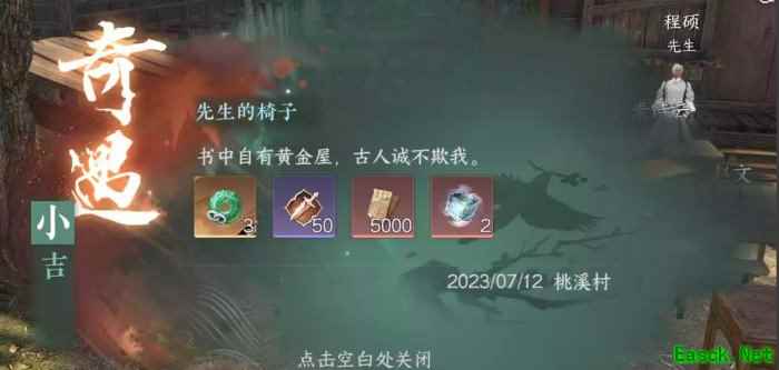 《逆水寒手游》先生的椅子任务攻略一、任务流程 1、必须是白天!到桃溪村1012.1030处,坐在竹椅上就会触发本奇遇