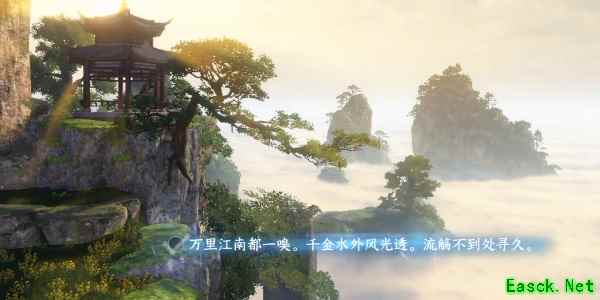 2、进入作词界面随视野移动我们看见花海的全貌,我们随机使用天空做为意象作词(天公未老,万水千山真有旧,不比心空自觉刘。)。
