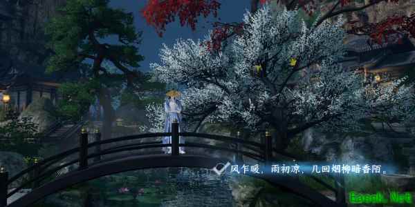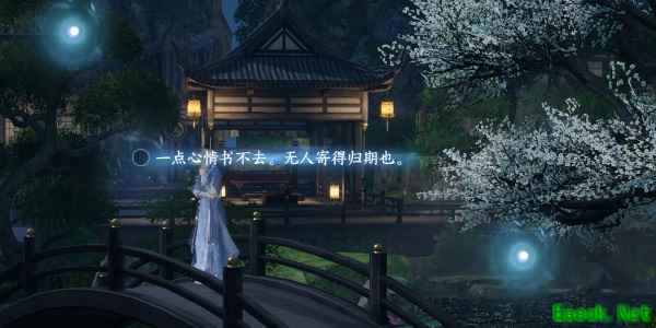 2、视野进入游戏作词画面以木桥旁的书院为意象作词(一点心情书不去,无人寄得归期也。)。