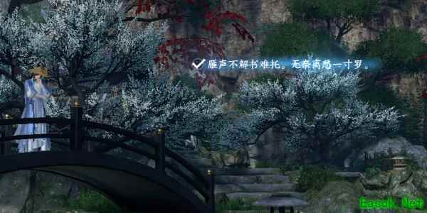 《逆水寒手游》三清山词话木桥任务攻略探寻过程: 1、玩家传送到三清山道观内的木桥上(1100,777)找到地上的写词点,以木兰花令做词牌名作词。