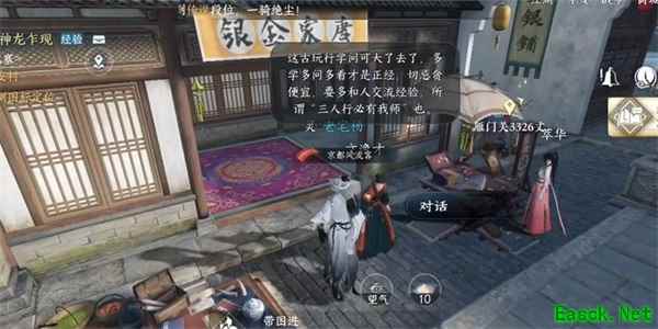 逆水寒手游古玩装菜任务怎么完成1、玩家需要前往杭州1054,1017)找到古玩店的老板文逸才对话,从中得知有关吓跑顾客的情况。