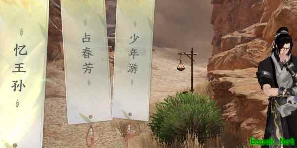 《逆水寒手游》宋辽边境魔鬼城词话任务攻略探寻步骤: 1、传送到宋辽边境魔鬼城城外(393,458)找到地上的写词点,小编选择忆王孙为词牌名作词。