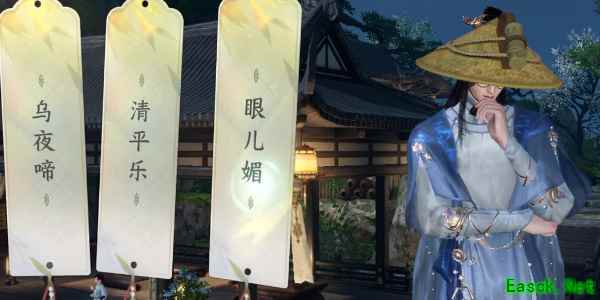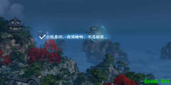 《逆水寒手游》三清山自在门词语攻略探寻步骤: 1、玩家来到三清山导道观内自在门附近(1120,790)找到地上的写词点,选择眼儿媚为词牌名创作词。