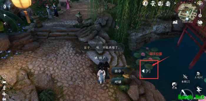 2、到杭州1080.902处旁边水池拾取“笛子”提交给NPC“秋筠”并对话