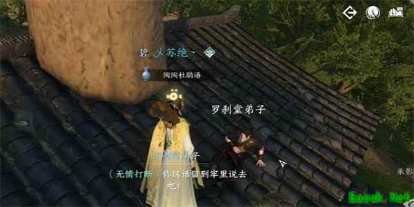 2、然后玩家会看到罗刹堂弟子在抢东西,使用轻功跟上去抓住罗刹堂弟子,后面罗刹堂弟子还会威胁玩家,最后将其抓住,就是可以看到罗刹堂弟子是向玩家进行求饶,但还是需要将其送到大牢中。
